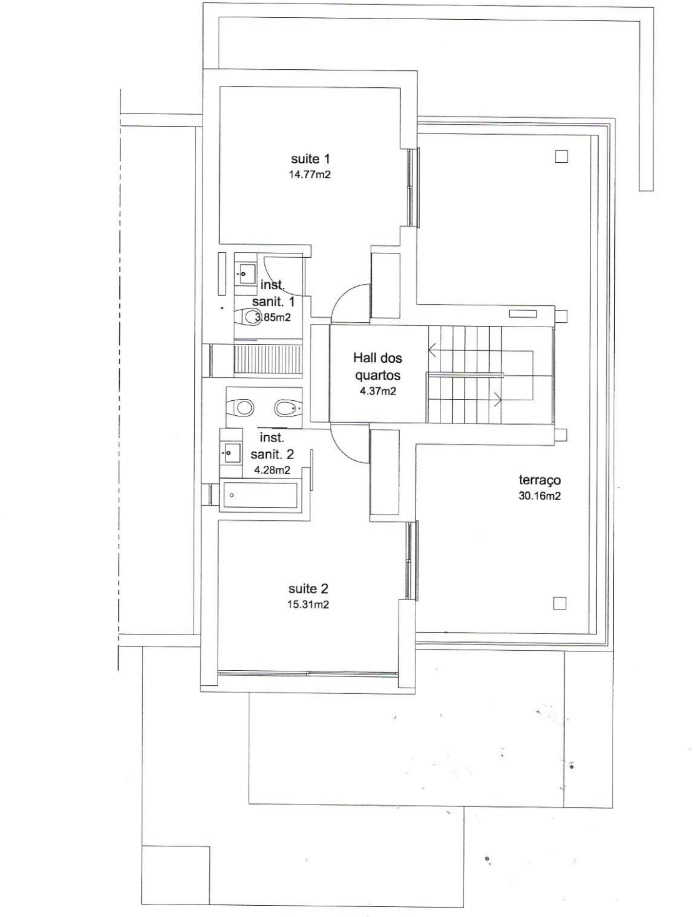 Acessível a partir de uma escadaria que parte do hall, o segundo piso é desvendado, onde se encontram dois quartos em suite, uma divisão de arrumos e um extenso terraço a 180º. Os dois quartos revelam áreas bem estruturadas e todos garantem um bom aproveitamento da luz solar.